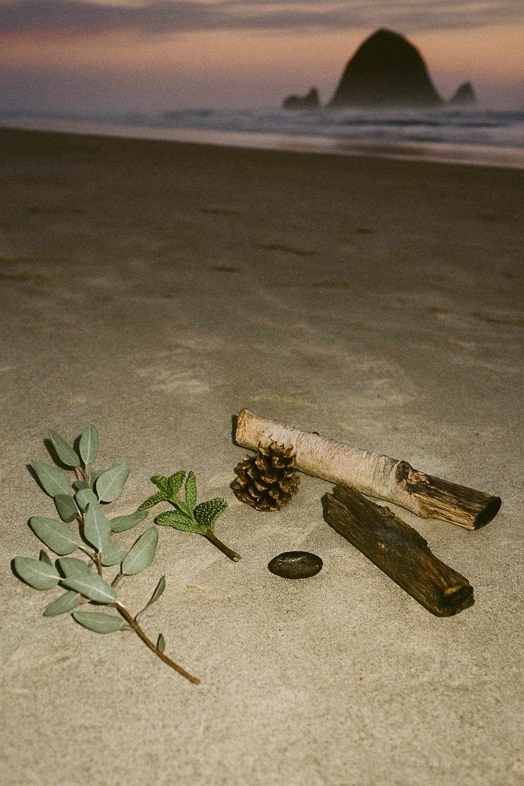 Nestled on the coast is the small town of Cannon Beach. Here you can enjoy sweeping views of long sandy shores, sea caves, and deep coves with rocks perfectly positioned for tufted puffins to enjoy. Paper-like bark and thin-leaved birch trees line the woods of the Pacific Northwest where this charming coastal village sits. This oasis, captured through wooded notes of birch, pine, and cypress, is complimented with cool touches of eucalyptus and mint that are instantly warmed with hints of smoke and tonka bean.
