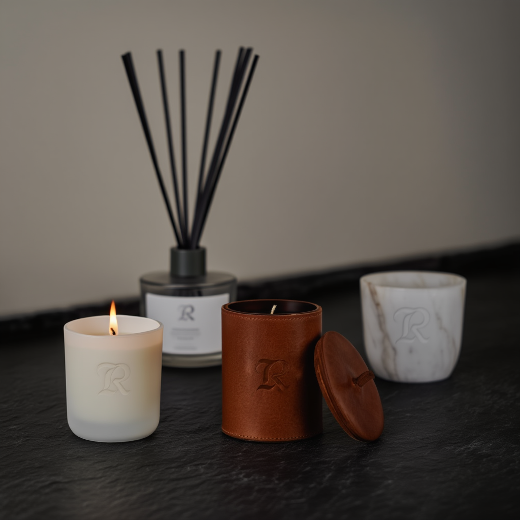 Candles, diffusers, perfumes, and sprays, customized with your logo, vessel, packaging, and scent.